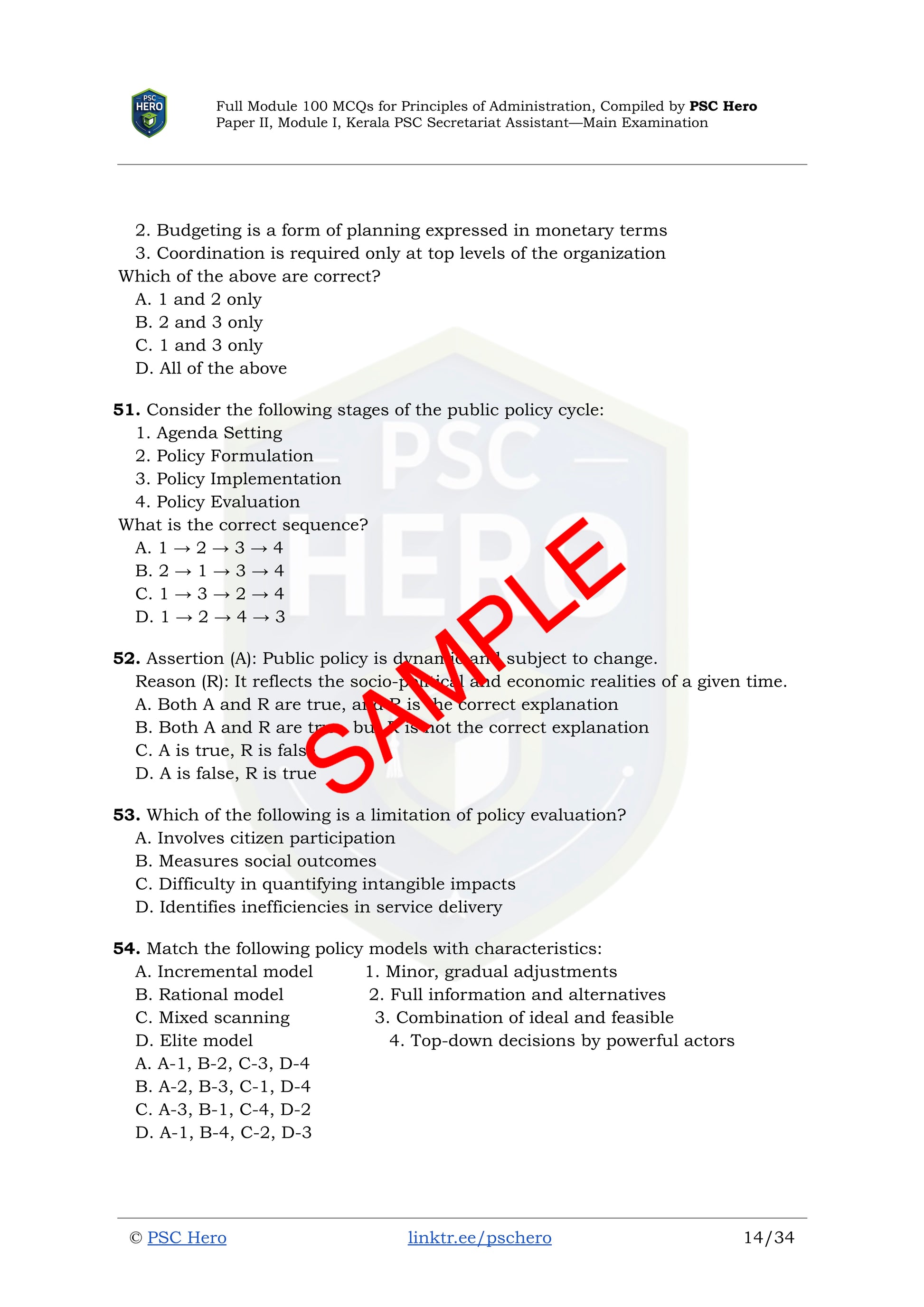 Full Module Mock Test – MCQs with Answers – Principles of Administration – Kerala PSC Secretariat Assistant Mains – Module I, Paper II