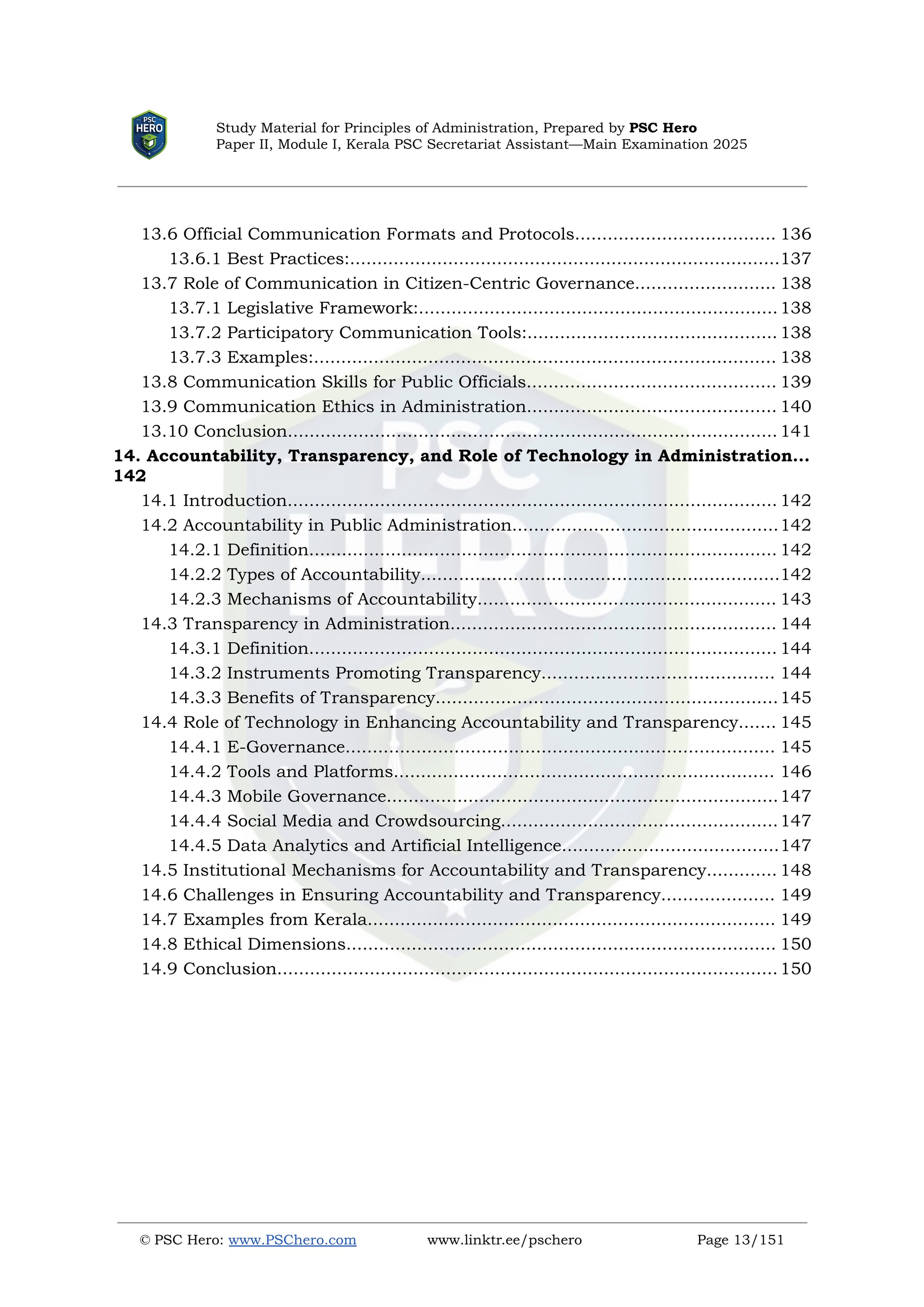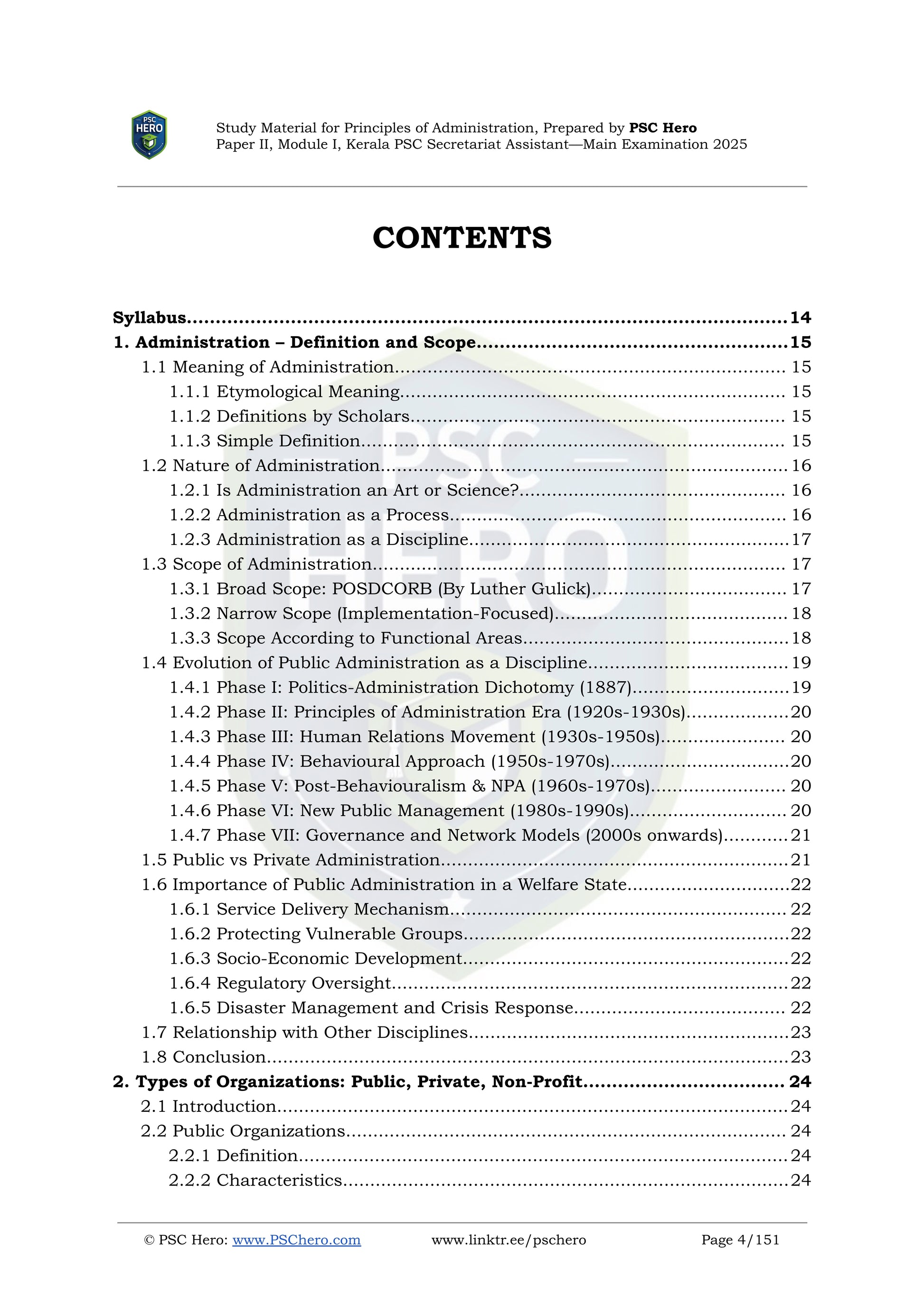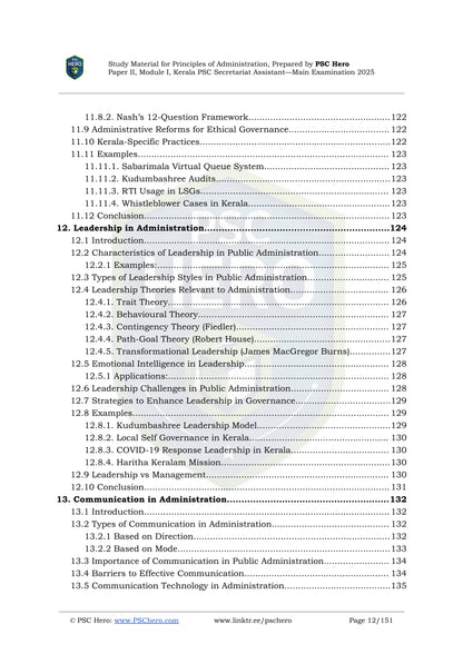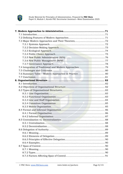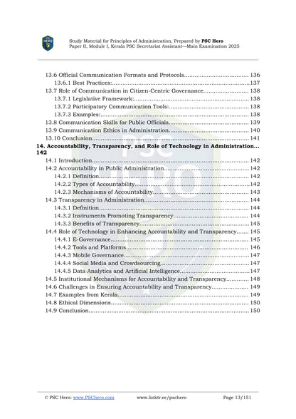 This 153-page expertly crafted PDF is your ultimate companion for the Kerala PSC Secretariat Assistant Mains Exam. Covering the entire Module I of Paper II—Principles of Administration—it brings together everything you need in one neat, exam-focused package.