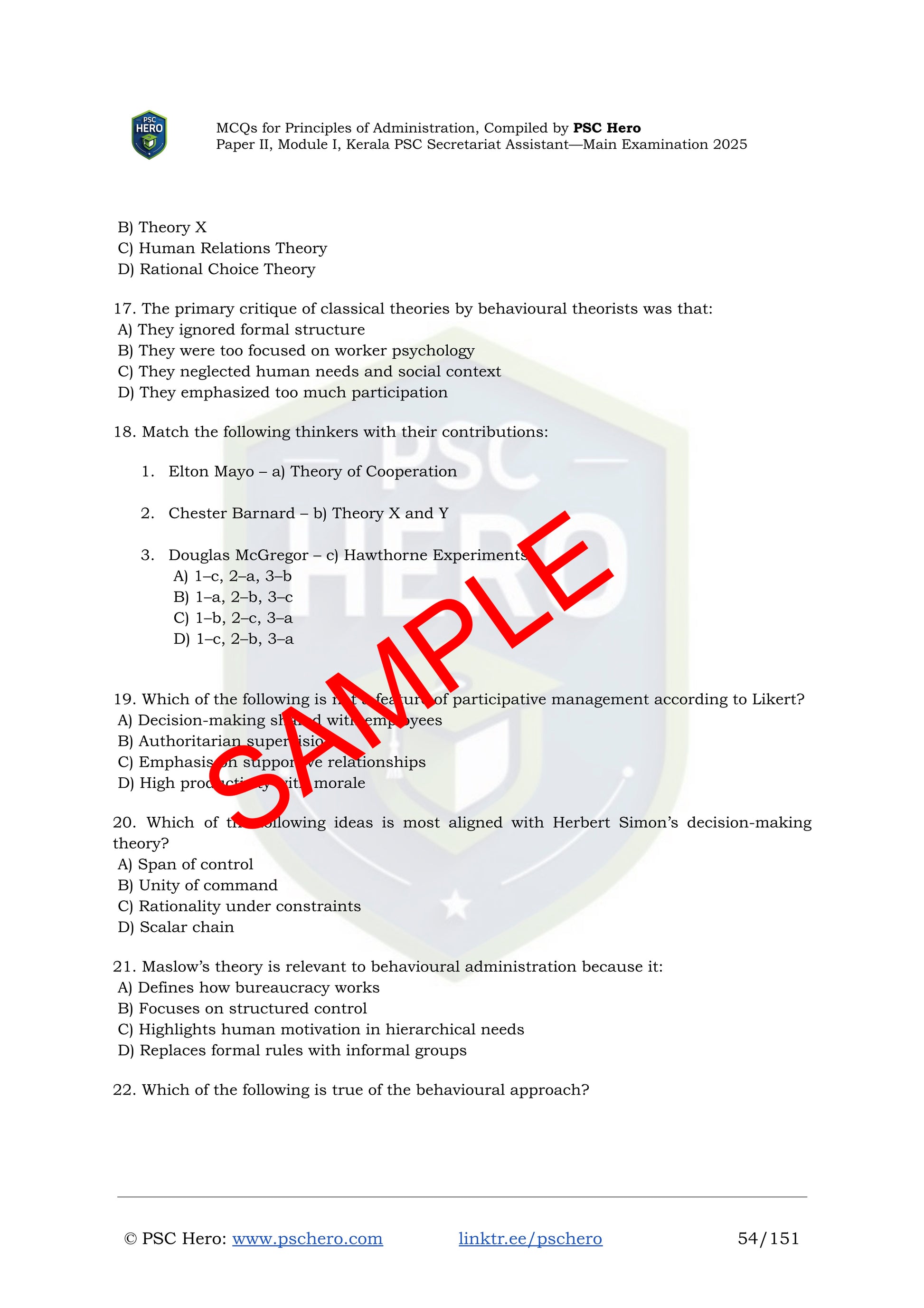 Topic-Wise MCQs with Answers – Principles of Administration – Kerala PSC Secretariat Assistant Mains – Module I, Paper II